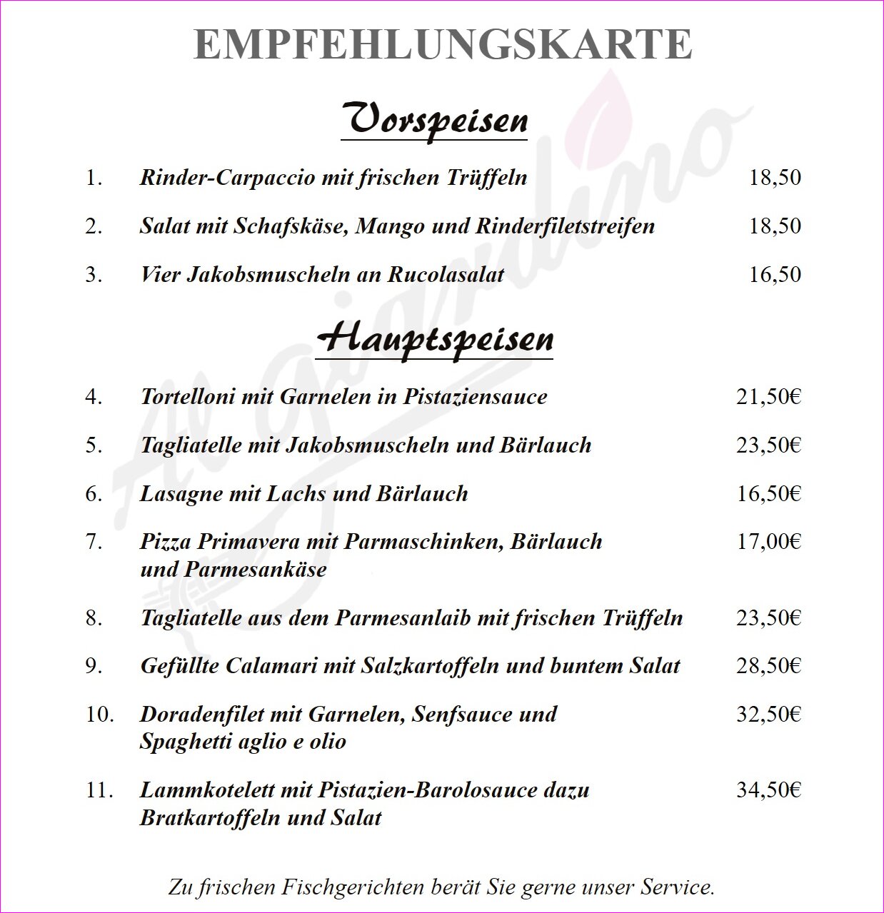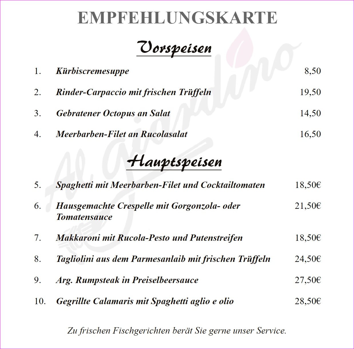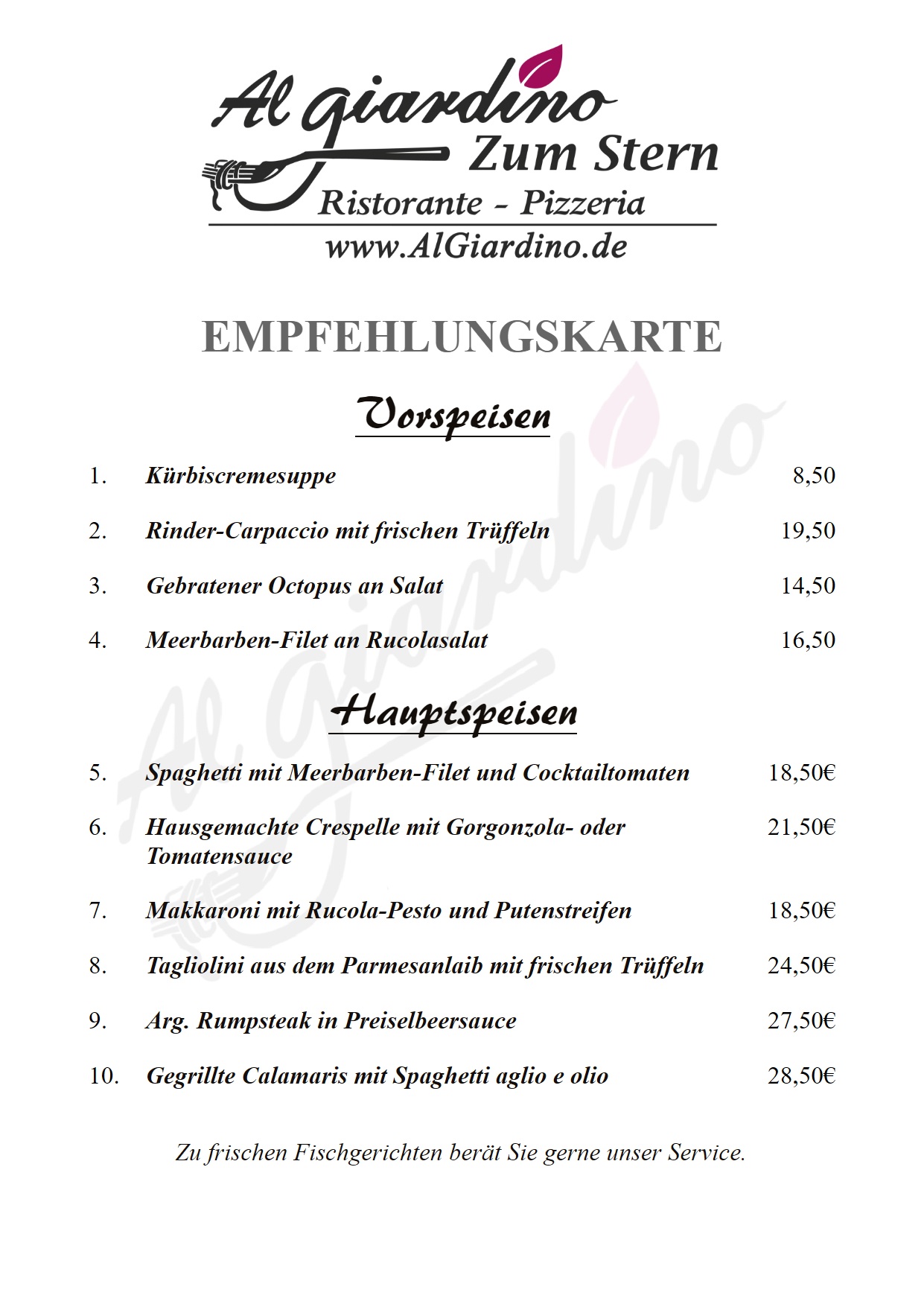 Herzlich Willkommen! Das Restaurant Al Giardino befindet sich in der malerischen Altstadt von Büdingen und bietet eine freundliche Atmosphäre sowie köstliche Speisen und Getränke.