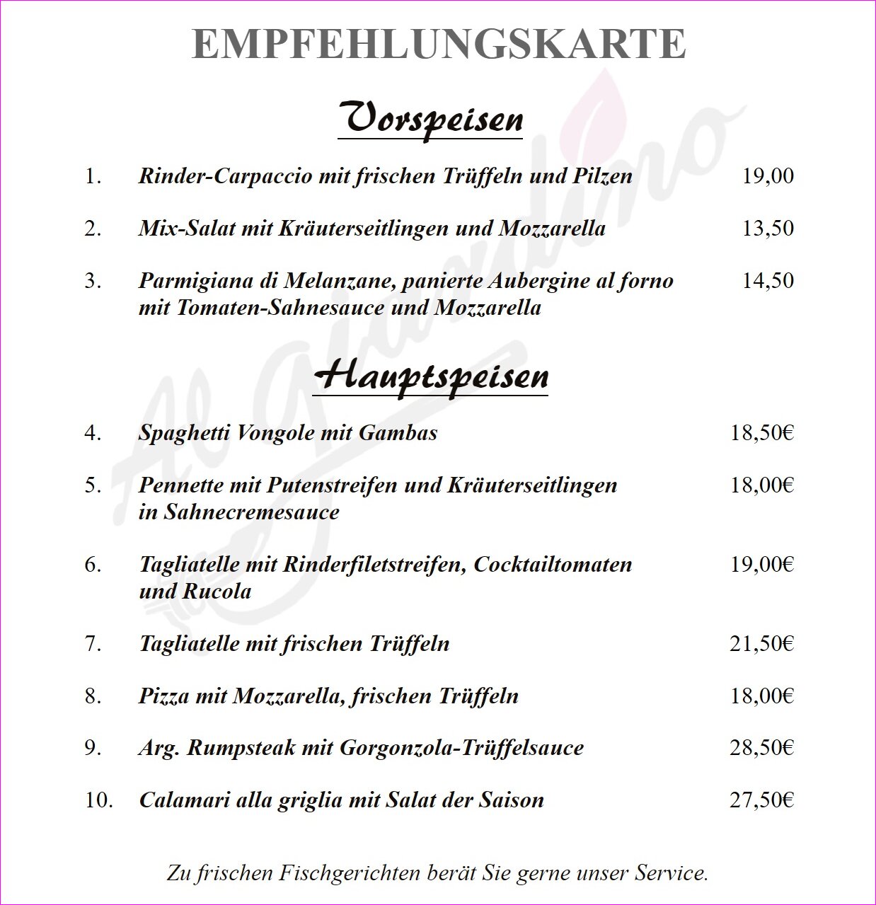 63654 Büdingen : Vorstadt 3 : Tel. 06042 9751212 : info@algiardinobuedingen.de